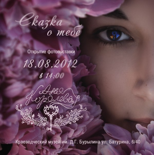 В день открытия выставки, каждый желающий может попасть в объектив фотоволшебницы. Название выставки «Сказка о тебе» выбрано не случайно, организаторы планируют воссоздать обстановку сказки при помощи множества декораций от чучел птиц под потолком и настоящих деревьев до мельчайших деталей альбомов.